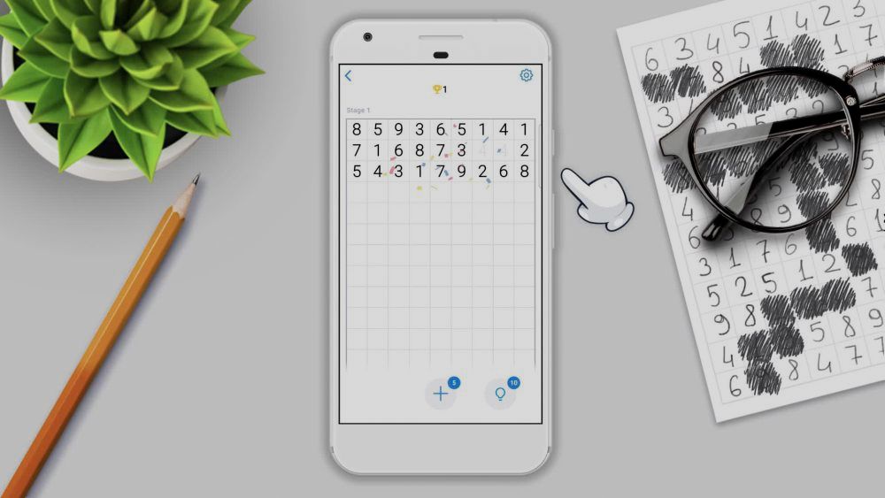 Number Match is an addictive, easy-to-learn puzzle game that provides an engaging experience and challenges your brain. It’s a mobile and improved version of the classic pen and paper game from your childhood. The rules are very simple: find pairs of the same number (e.g. 1 and 1, 7 and 7) or pairs that add up to 10 (e.g. 6 and 4, 8 and 2) on the number grid and remove them from the board to succeed. The more numbers you remove from the board, the higher your score!